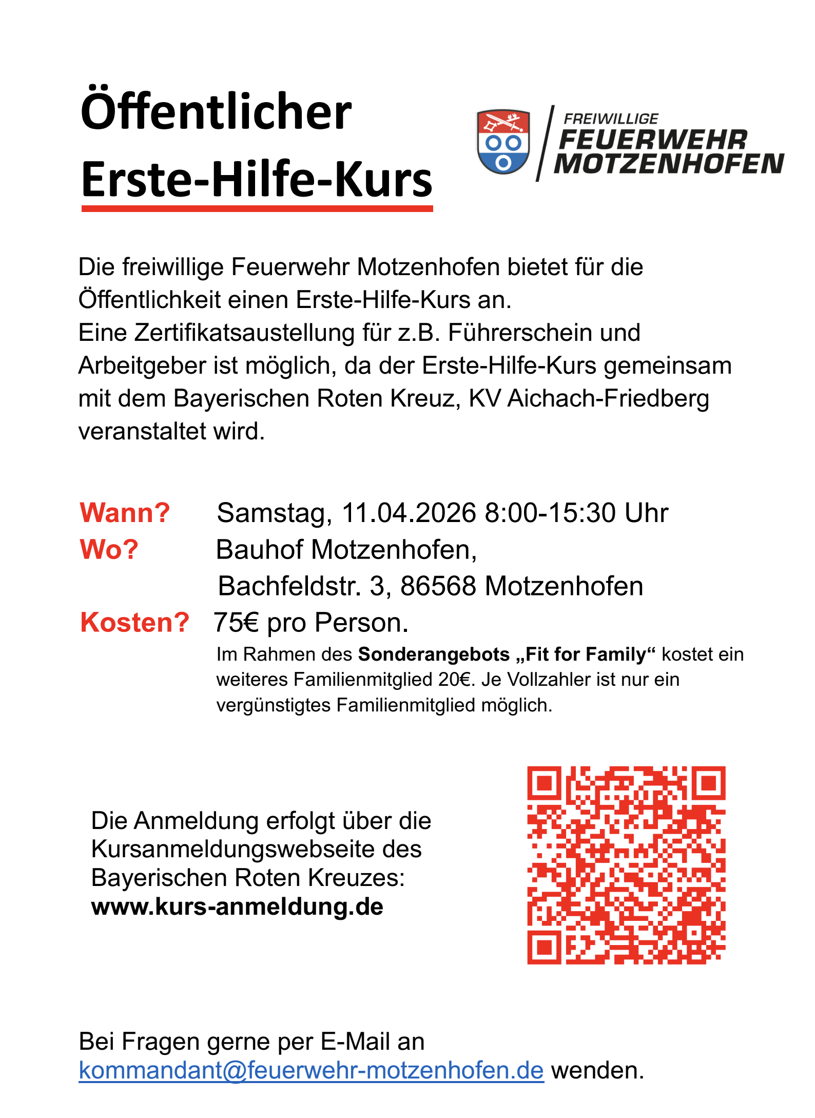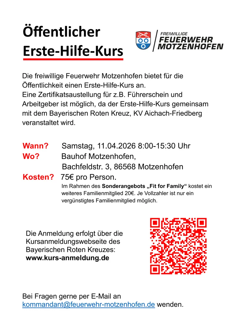 Erste-Hilfe-Kurse der Feuerwehren Hollenbach und Motzenhofen – alle Infos hier