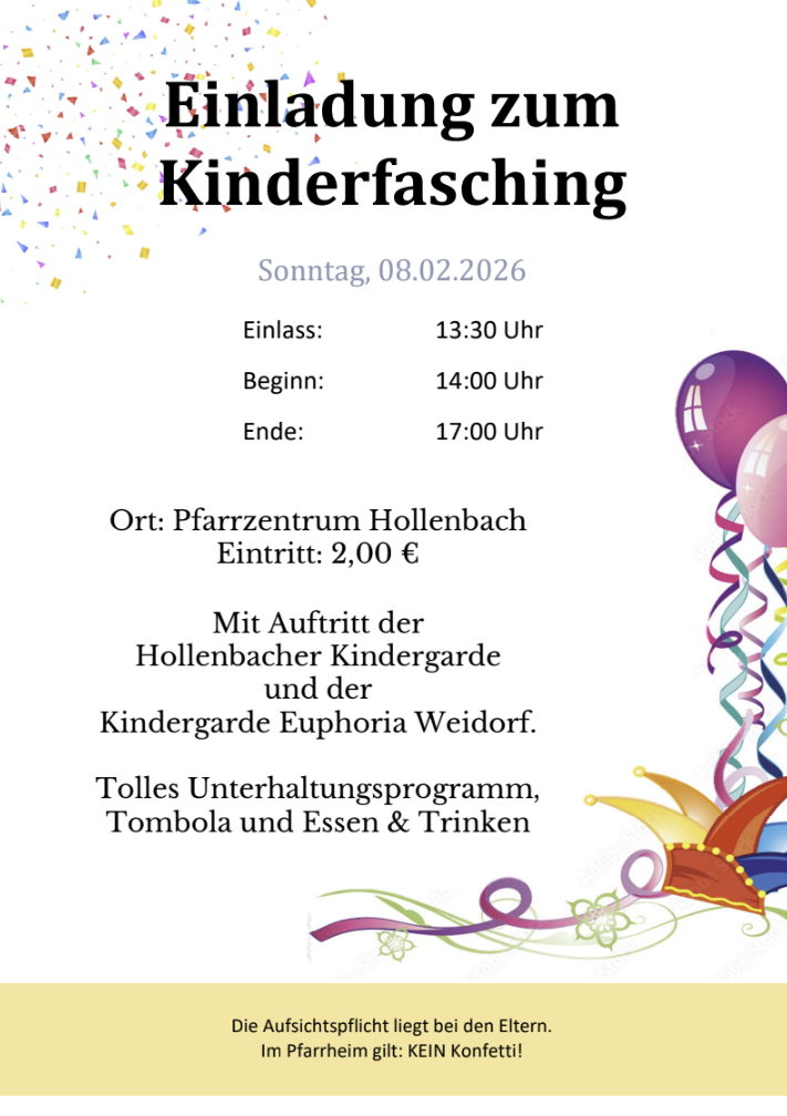 Kinderfasching am 08.02.2026 im Pfarrheim Hollenbach