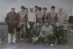 1985 Erste freundschaftliche Beziehungen durch den TSV (H. Loder, Bgm. Rupert Reitberger, Bgm. Bertraud Denis, Henri Derenne, Georges Jaré (Vorsitzender des Sportvereins von Contest)